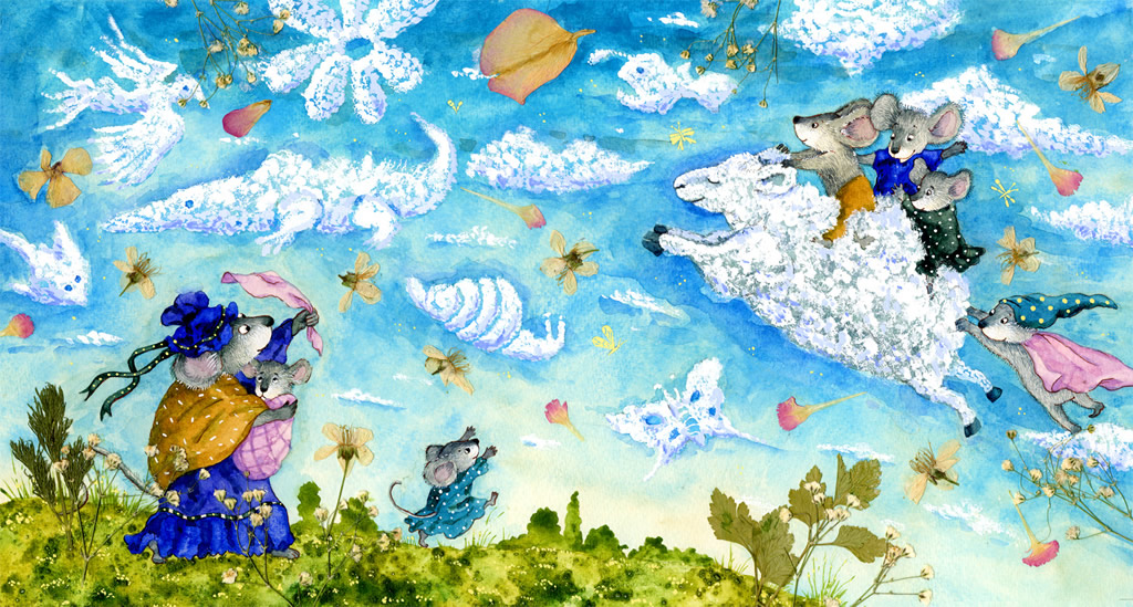 Grannys Gift - illustration: watercolor, paper, gouache, aplique