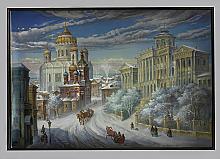 The Winter In Moscow - a box, Fedoskino lacquer painting technique