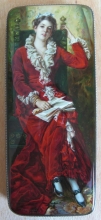 Fedoskino miniature is a traditional Russian lacquer painting known since the 18th century. Layers of oil paint, compact brushwork and fine "transparent" strokes are a feature of a Fedoskino miniature. The use of mother-of-pearl, gold or silver leaf creates the effect of a shimmering glow. Most of the Fedoskino papier-mâché wares have a black background on the outside and are covered inside with scarlet, bright-red or cherry-colored lacquer. Several layers of pasted cardboard, boiled in linseed oil and then repeatedly dried in a hot oven, form a hard, light and waterproof material that can be cut, polished and lacquered.
