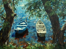 Boats Under Willow Trees - oil, canvas