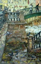Slope To The Water At Griboyedov Canal - oil, canvas
