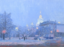 Twilight. View Of Moscow State University Building - oil, canvas