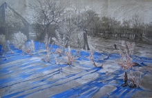 Shadows - colored paper, mixed technique, pencil, sepia, white pencil, watercolors