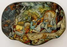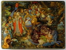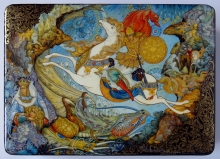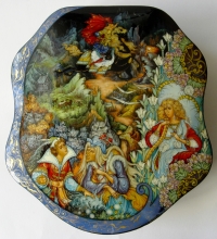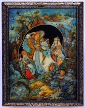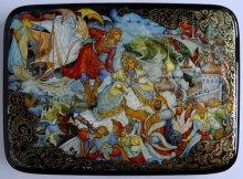 Tale Of Fedot The Archer - a box: papier-mache, gold leaf, lacquer, egg tempera