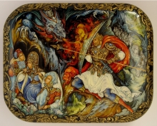 Dobrynya And Zmey - a box: papier-mache, gold leaf, lacquer, egg tempera