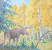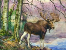 Moose - watercolors, paper
