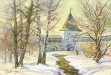 First Day Of Spring In Goretsky Monastery - watercolors, paper