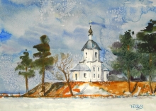 Tarusa. Resurrection Church - watercolors, paper