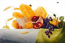 Honey and Fruits - decorative panel, Fedoskino miniature lacquer painting