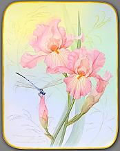 Iris - decorative panel, Fedoskino miniature lacquer painting