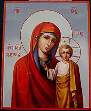 Kazan Gods Mother - Virgin With A Child - icon, Fedoskino lacquered painting
