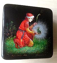 Princess Frog-Tsarina Frog - box, Fedoskino lacquer painting technique