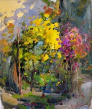 Chrysanthemums - oil, canvas on hardboard