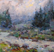 Snow, Frost And Winter Evening - oil, canvas
