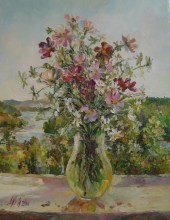 May Lilies At The Window - oil, cnavas