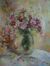 Cosmos Flowers - oil, canvas