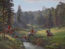 Hunt With Hounds - oil, canvas