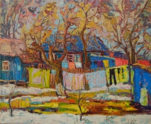 Yard With Laundry - oil, canvas