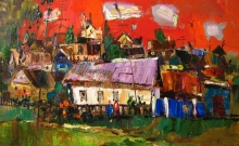 Evening In The Village - oil, canvas