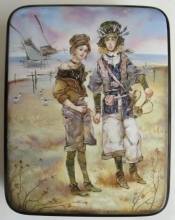 Travellers - box: papier-mache, oil, lacquer, filigree
