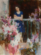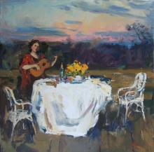 Evening On The Terrace - oil, canvas