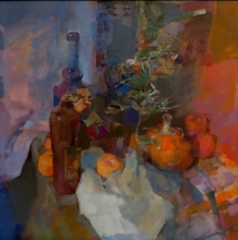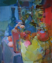 Still Life With A Branch Of Sea-buckthorn - oil, canvas on cardboard