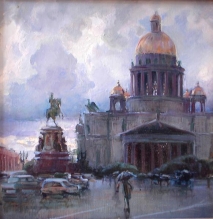Saint-Petersburg. Isaaks Square In The Rain - oil, canvas