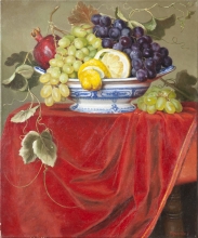 Still Life With Fruit On The Red Velvet - oil, canvas