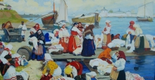On A Nice Day. Rinsing Of The Laundry - oil, canvas