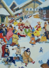 Russian Festival. Sledging Downhill - oil, canvas
