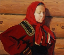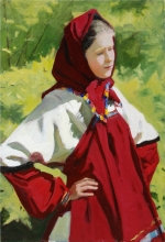 Girl In A Red Head Scarf - oil, canvas