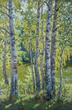 Sunny Day. Birch Trees - oil, canvas