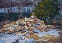 Firewood. Sketch - oil, canvas