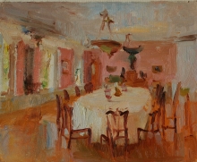 Pink Interior - oil, cardboard