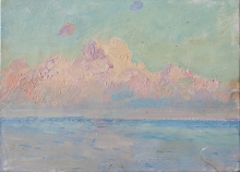 Cloud Over The Sea - oil, paper on ply board