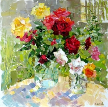 Roses In The Garden - oil, canvas