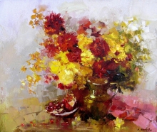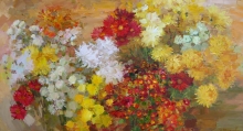 October. Chrysanthemums - oil, canvas