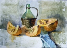Still Life With Pumpkin - watercolors, paper