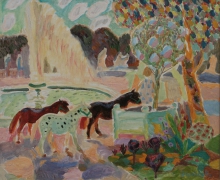 Pony At The Fountain - oil, canvas