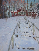 Mansion Covered With Snow - oil, canvas