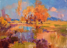 Autumn On The River Tizsa - oil, canvas