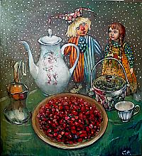 Still Life With Rose Hips - oil, canvas