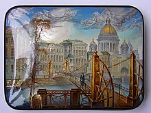 Pochtamtsky Bridge in Saint Petersburg - a box, Fedoskino lacquer painting technique
