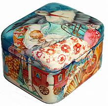 Delivered By The Stork - a box, Fedoskino lacquer painting technique
